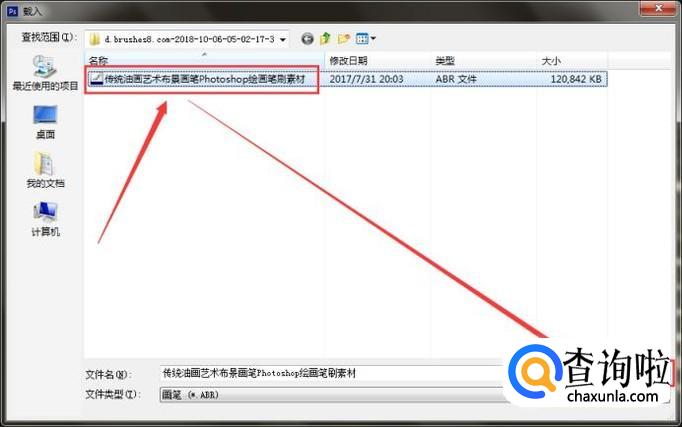 然后再弹出的对话框中选择笔刷文件,这样就能导入成功了。