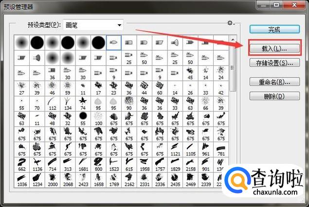 在弹出对话框中选择相应的笔刷文件,点击“载入”。