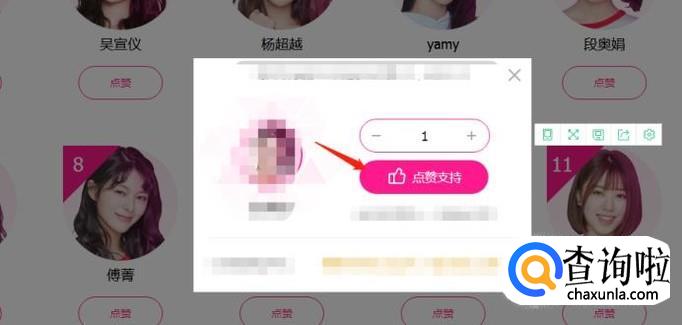 登陆后再次点击想要点赞的选手,此时会弹出一个小窗口,点击“点赞支持”