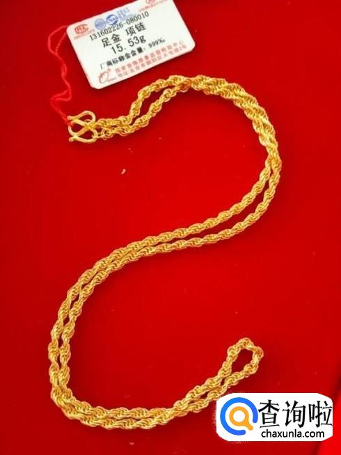 在给女士买项链的时候一定要看清楚项链的标签上是否标记着足金以及项链的克数。一般正常的含金量应该如下图所示。