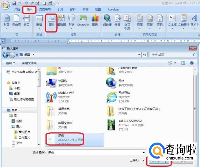 回到Word界面,点击“插入”,选择“图片”,然后把该图片插入就可以了。