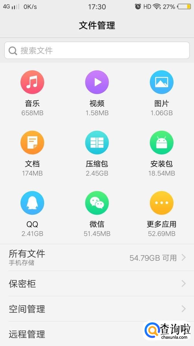 点击“文件管理”可以在这里找到“保险柜”,点击“保密柜”。