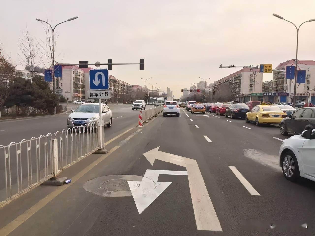 在左转车道上,如果一截黄实线中间有一段黄色虚线,那么这个虚线处同样是可以允许掉头的,另外有的是左转车道靠内侧为虚线,外侧为黄实线,也可以掉头,有的左转车道在接近路口设置了一个开口,允许掉头。