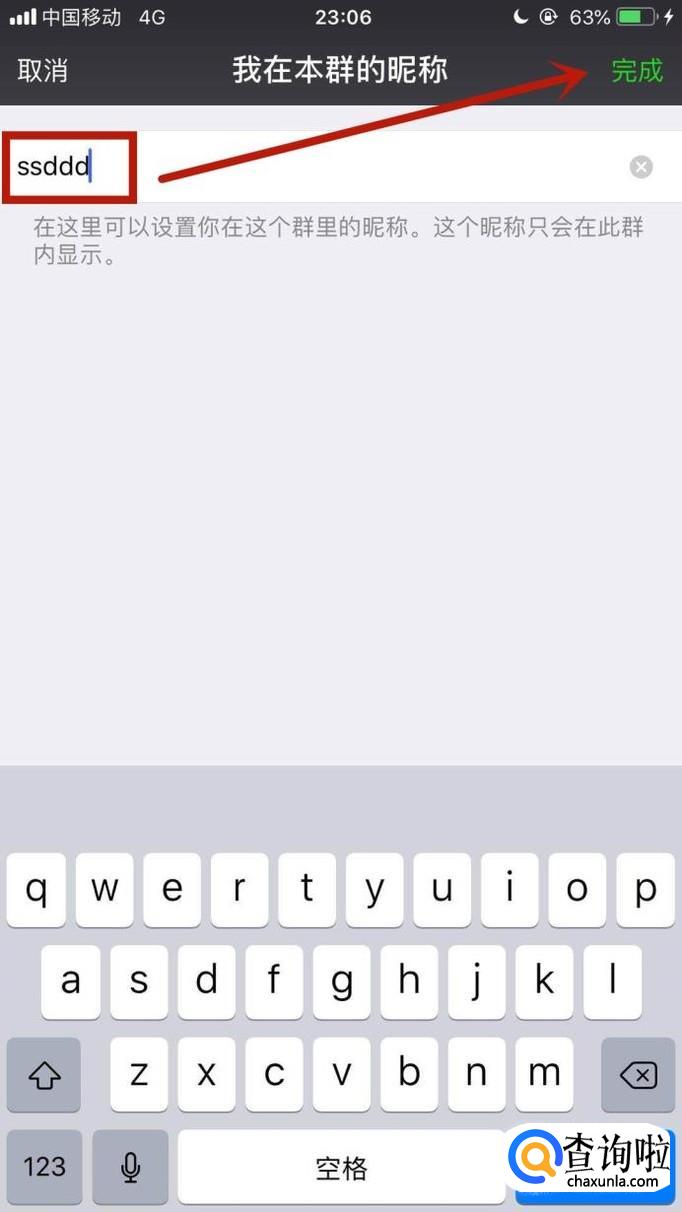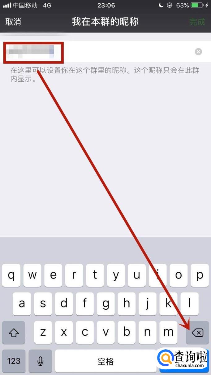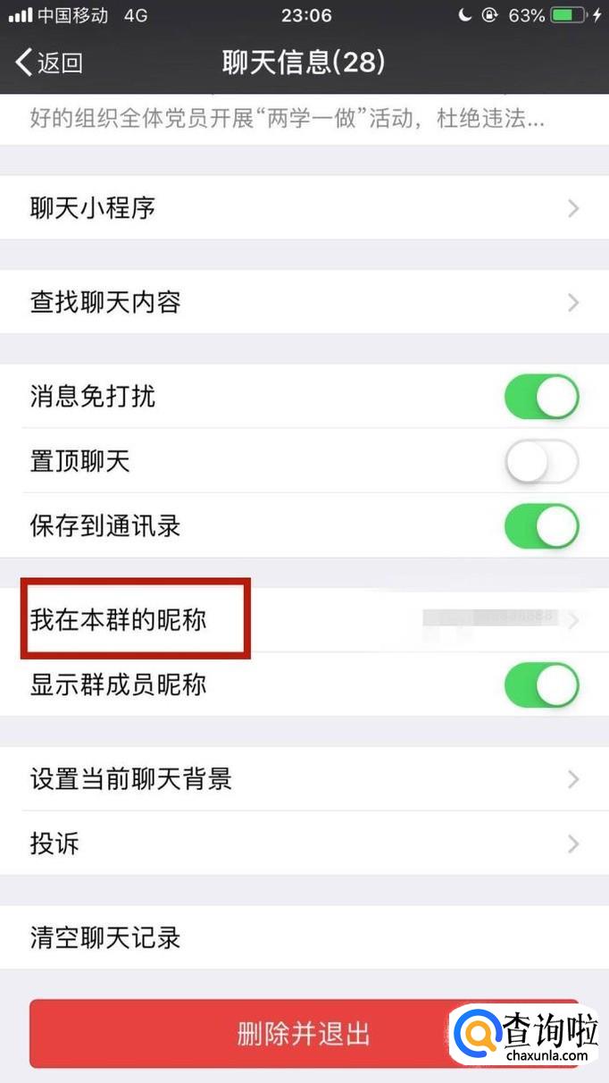 然后点击我在本群的昵称,如下图所示。