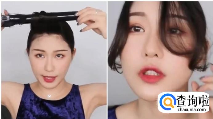其实按照上述步骤操作就剪得差不多了,但是接下来我们再上个微微的卷度,刘海会更漂亮,把刘海拉到前面来,用直径大的电棒(32~38mm), 整撮向上、内往外上卷,停留3~ 5秒后就可放开,让刘海不要太卷。
