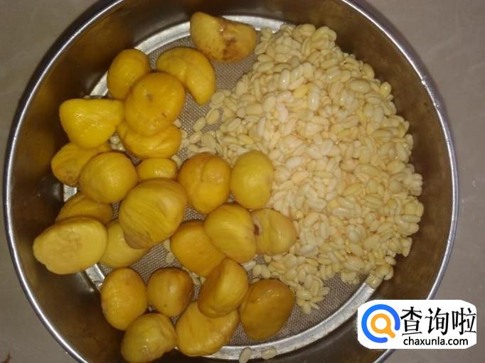 然后捞上来沥干水份放到碟子,板栗也放碟子备用。