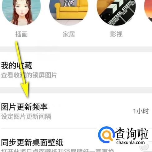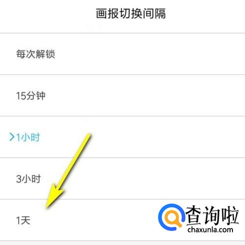 转到锁屏画报的界面。在这里,我们设置画报的更新频率,比如,设置一天换一次图片。