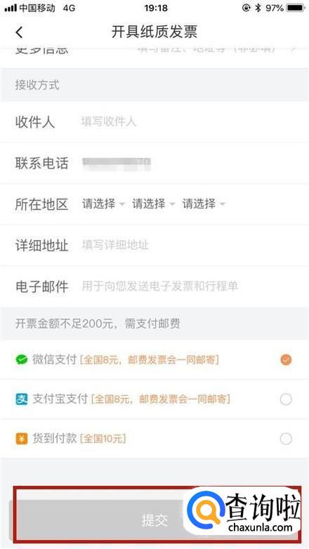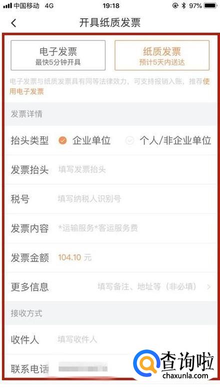 接着选择发票的类型并填写相关的个人信息,如下图所示。