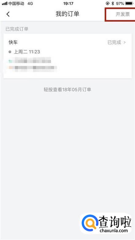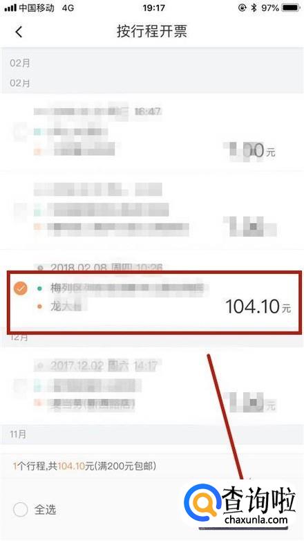 然后选择一个要开发票的行程并点击下一步,如下图所示。
