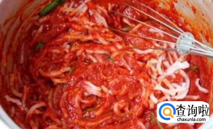 把适量的葱姜蒜打磨成汁,再加入适量的辣椒粉和白糖继续磨(为了口感更好可以加入萝卜丝,根据自己的喜好加入)搅拌均匀