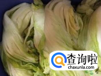 第二天把放置一夜的白菜拿出,用清水冲洗一下,沥干水。(这个时候要把盐冲洗干净,不然成品会好咸的)