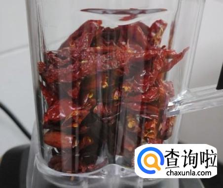将炒好的辣椒放到搅拌机中,搅拌几秒钟,就可以把辣椒打成细细的粉末状了,辣椒粉就制成了,放到玻璃瓶中,随吃随取,特别方便。