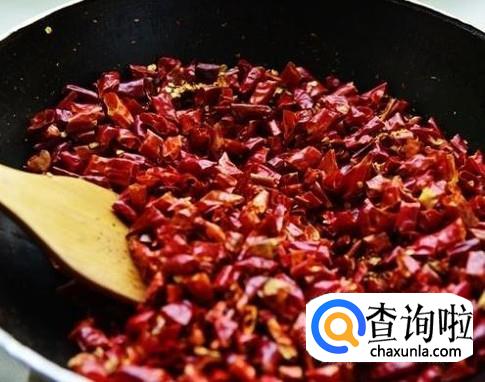 辣椒彻底晒干以后,将辣椒切成小段儿,放在锅里,开小火,干炒几分钟,炒到辣椒稍微散发出香味儿。