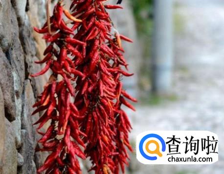 把辣椒用线穿起来,挂到通风的地方,风干里面的水分,使辣椒表面起皱褶。