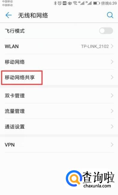 之后我们点击移动网络共享;