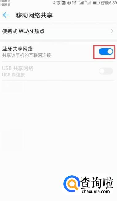 之后我们将蓝牙共享网络的开关向右滑动;