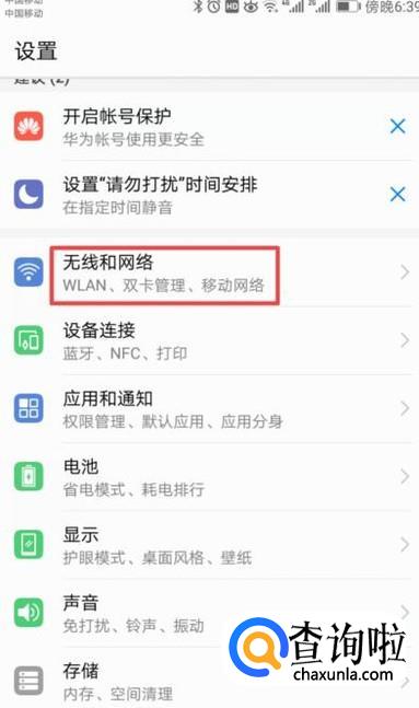 之后我们点击无线和网络;