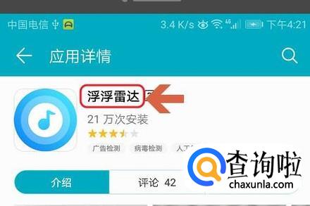 想要快速有效的识别抖音背景音乐,我们这次需要借助“浮浮雷达”这款APP,下图就是它的下载链接以及图标,切勿下载成其他的APP;