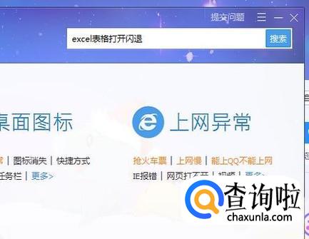 然后输入“excel表格打开闪退”并点击回车键,如下图所示。