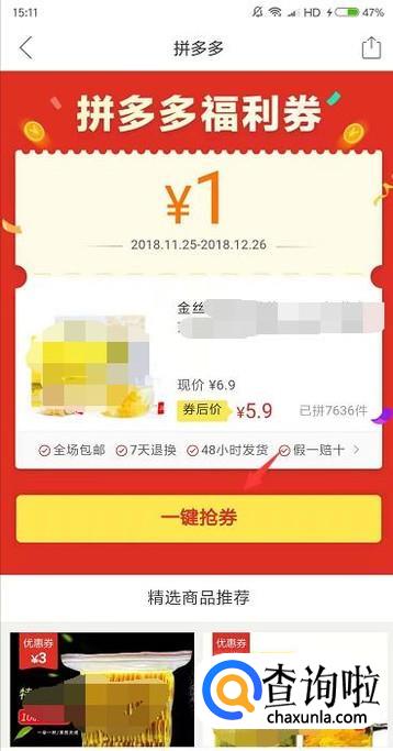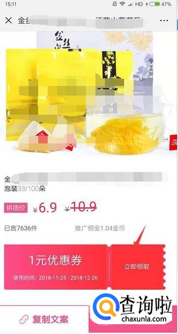 进入到商品的页面后就会看到优惠券的金额,点击右边的立即领劵。