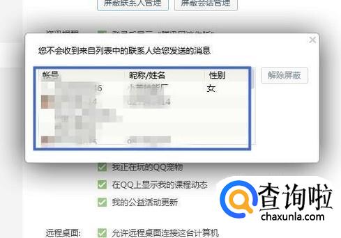 在这里我们就可以查询到有哪些好友被我们屏蔽了。