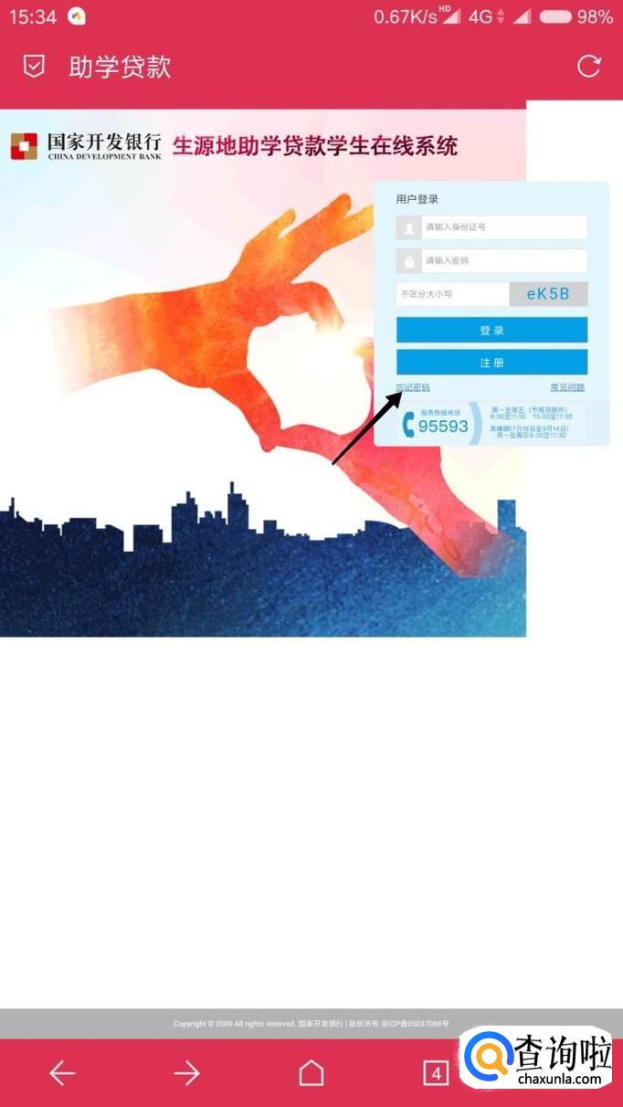 看到这个页面之后点击“注册”左下角的“忘记密码”按钮。
