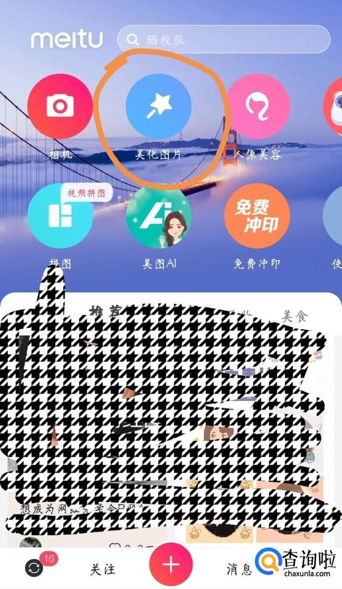 首先下载并打开手机上的美图秀秀,点击美图秀秀首页的“美化图片”功能