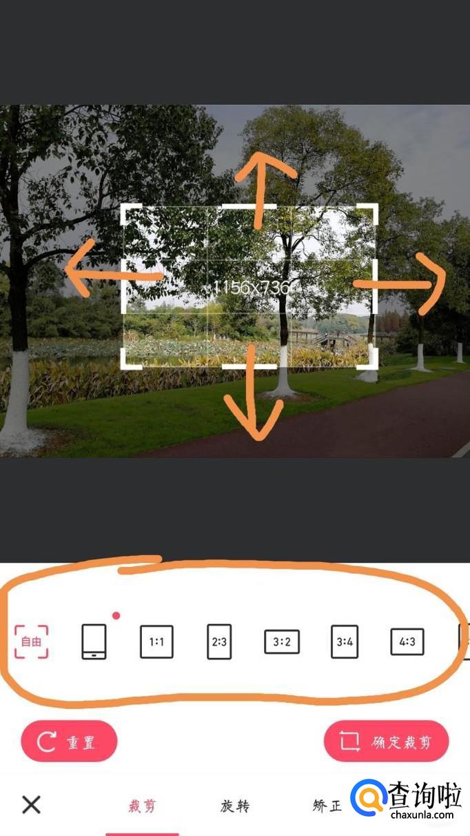 在图片编辑页面中,可以通过拖动图中方框的边框来只有修改图片的尺寸,或者通过选择下方的固定格式来修改图片尺寸