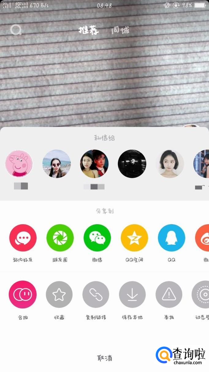 打开抖音,找到想要合拍的视频,点击右方的转发选项。