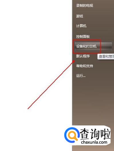 点击电脑桌面左下角的win图标,在弹出的菜单列表中单击“设备和打印机”选项。