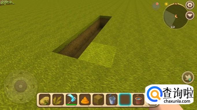 首先我们需要找一个平地,然后挖一个长坑道。如图所示。
