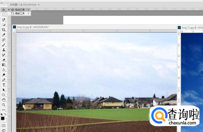 选择工具栏中的移动工具,将需要修正的图片拖动到背景层中
