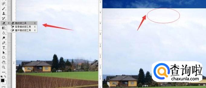 选择工具栏中的橡皮擦工具,擦除需要替换的上半部分