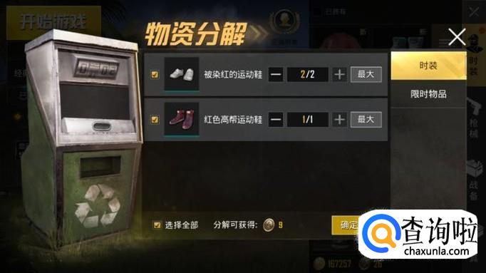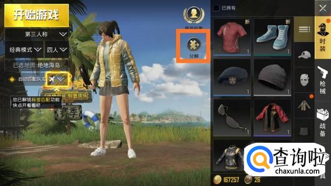 这里可以看到很多衣服,包括自己有的和没有的,点击左边的"分解"。