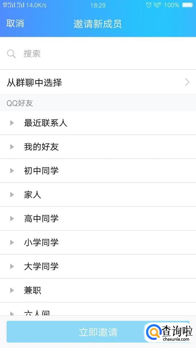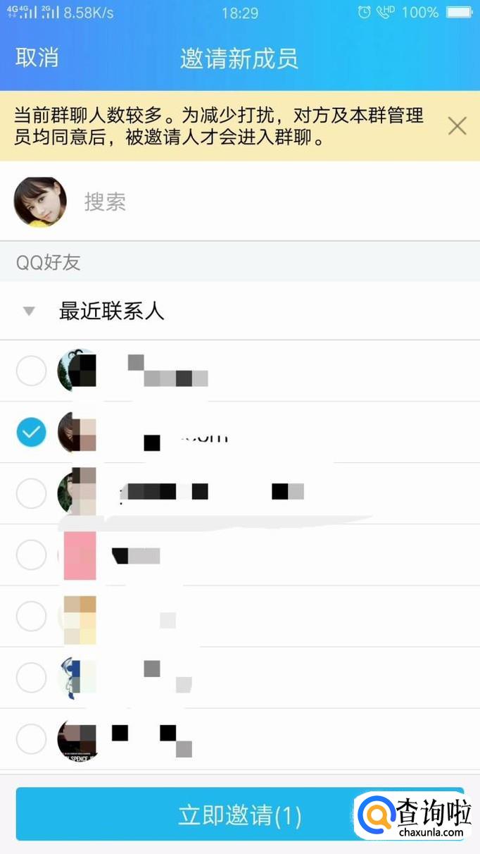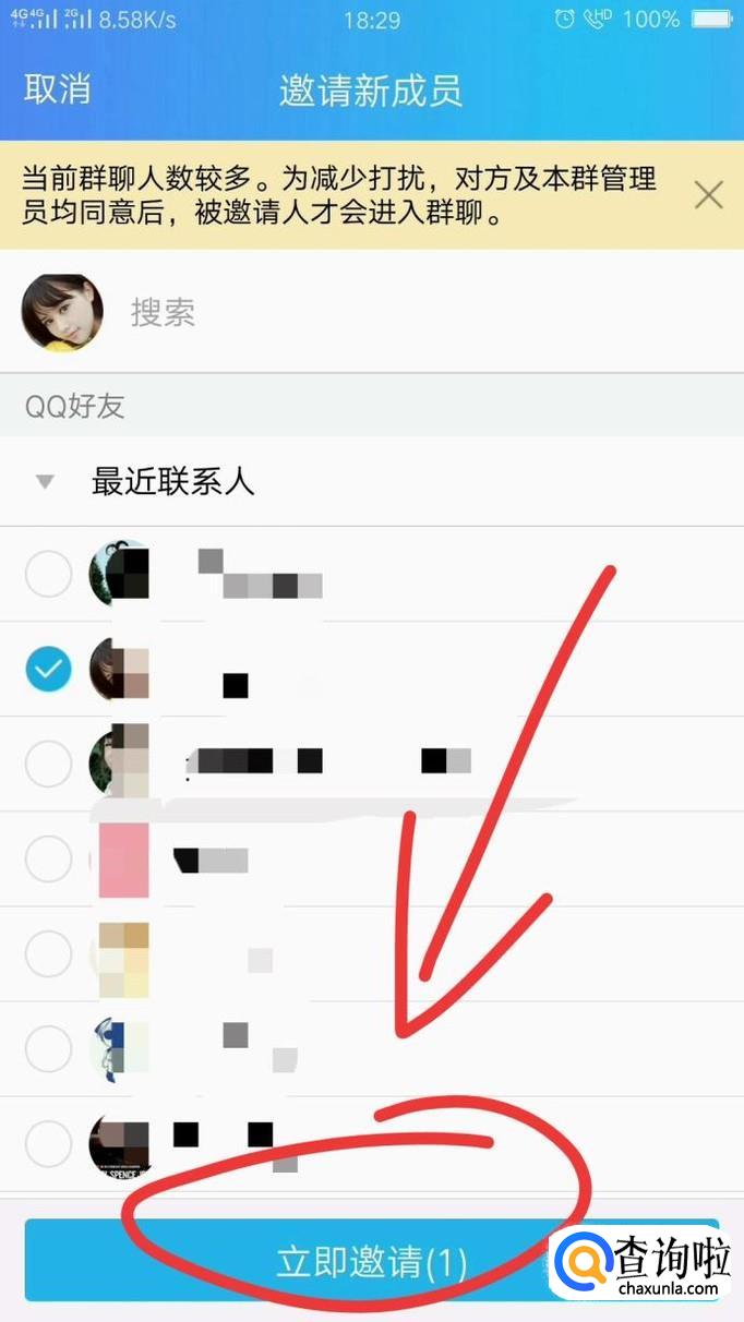 勾选需要邀请的好友。