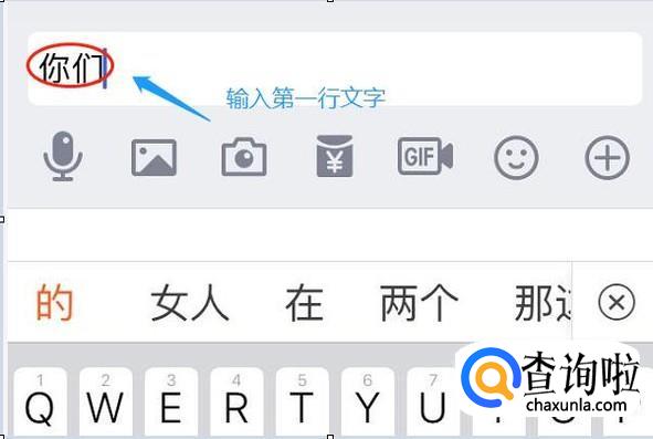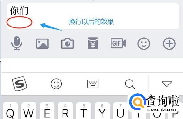 接下来我们说一下手机QQ聊天时如何换行,在手机上就要分输入法而定了,不同的输入法换行方法也是不同的,首先我们以使用人数最多的搜狗输入法为例,在聊天窗口输入的时候,我们先输入第一行的文字,比如:你们;