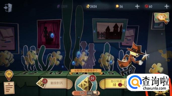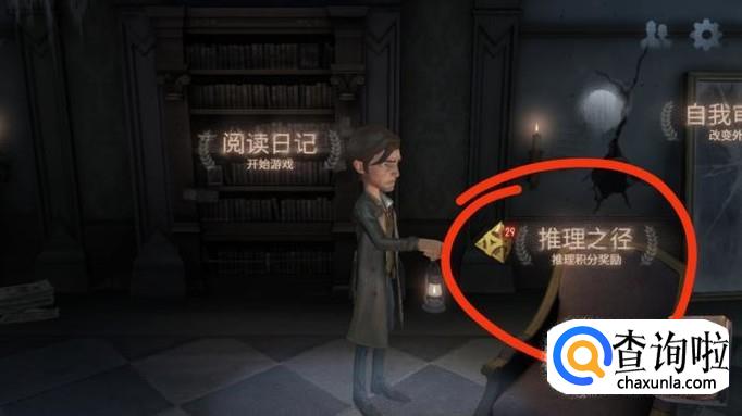 首先,进入第五人格界面,当你完成游戏之后,会出现如下的界面,有一个骰子形状,这显示你又增加了一个掷骰子的机会