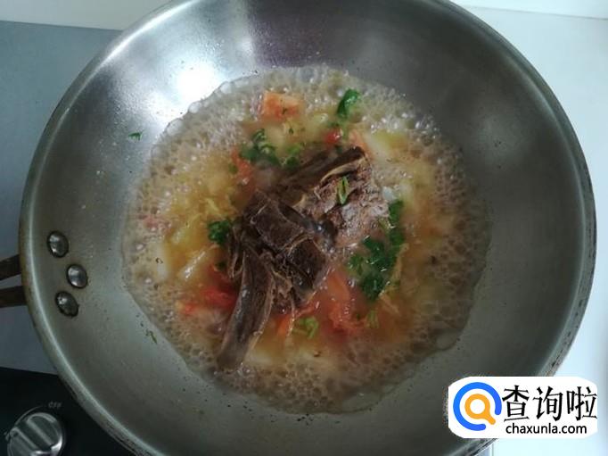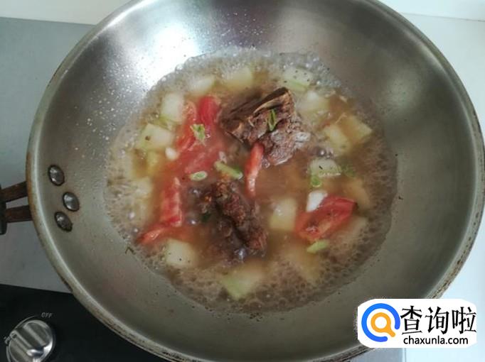 再加入西红柿块,葱花,姜末,盐继续熬煮入味。