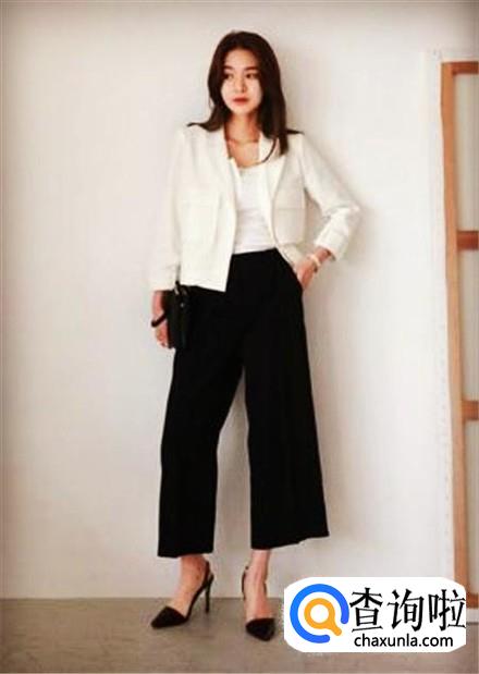 这身搭配不挑身材,只是不是胖的没法看就行。九分黑色金丝绒阔腿裤搭配一件白色小外搭,一双尖头细跟鞋瞬间展现出完美身材。