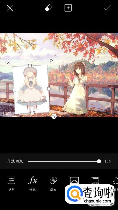 拖动上方的照片到合适的位置并调整大小,如下图,就可以实现照片的叠加了