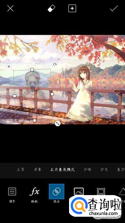 滑动下方的选项,找到混合,选择正片叠底,效果如下图