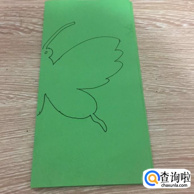 接着在正方形折纸上画出蝴蝶的外部轮廓,如下图所示。