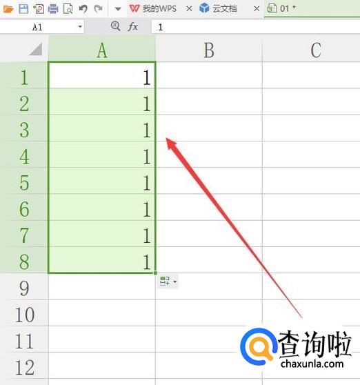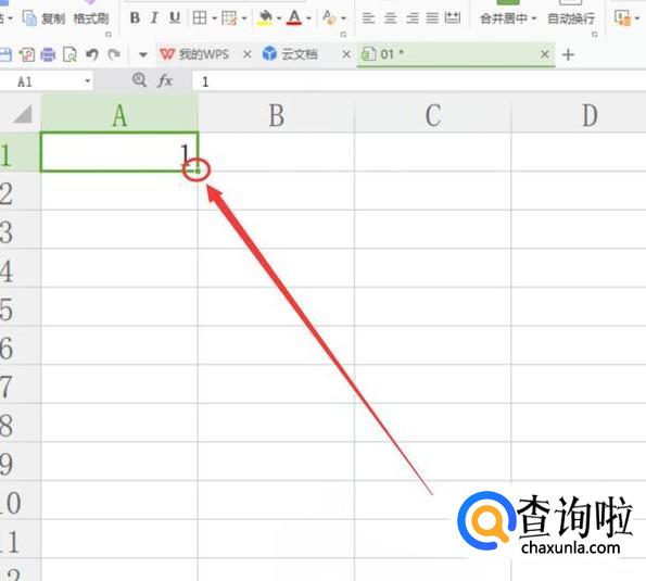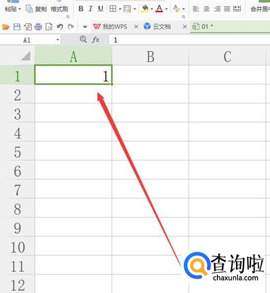 进入之后,在A1单元格上面输入一个“1”,如图所示。