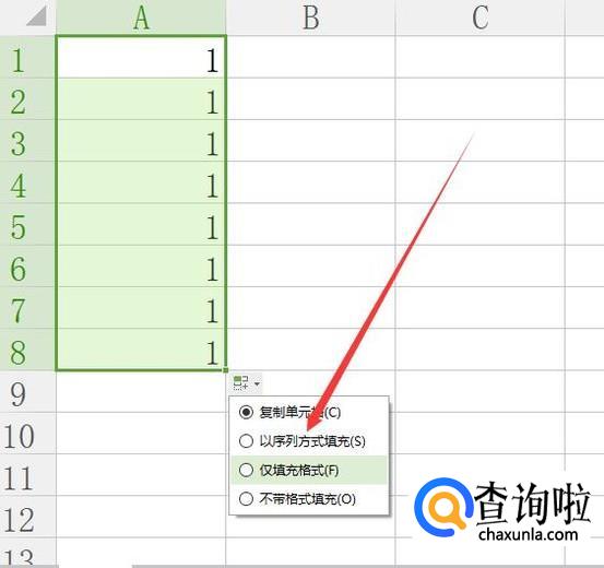 点击图示位置,选择“以序列方式填充”即可,如图所示。
