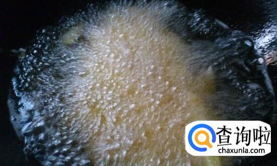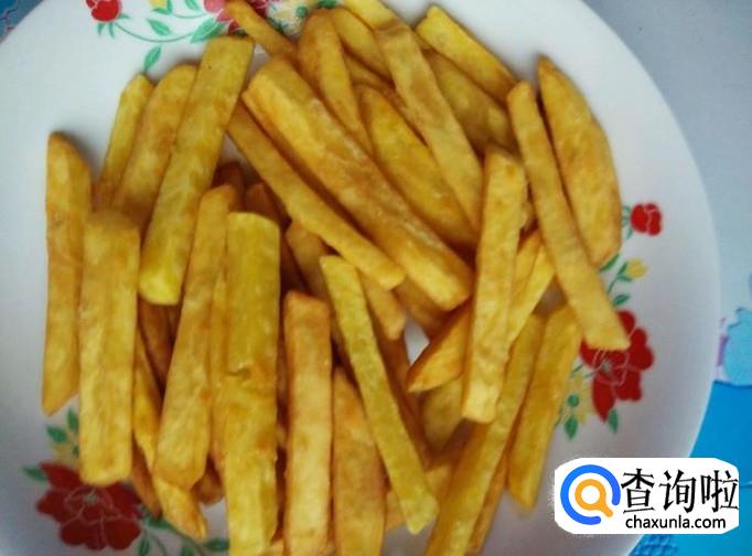 最后,油锅加热至六七分,倒入土豆条炸至金黄色捞出。