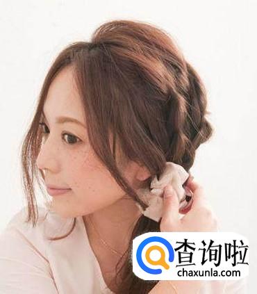 自己在家就能弄的发型,先在头顶上抓起一束头发,然后将抓起的头发辫起来,辫好后可以再辫一个,然后把没有辫的头发与辫了的头发都放到一侧并用一个自己喜欢的头绳绑起来。