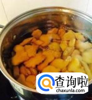 干燥的锅中加入姜与甜醋适量。文火煮沸后小火再熬制一个小时。