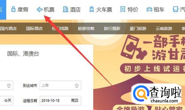 进入之后,点击“机票”,切换到该页面,如图所示。
