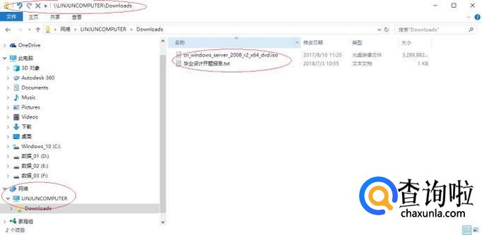 打开"文件资源管理器"程序窗口,如图选择"此电脑→网络→Downloads"文件夹。完成连接到局域网内共享文件夹的操作,本例到此希望对大家能有所帮助。