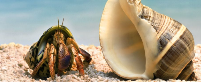寄居蟹为什么会居住在螺売里呢?这是由于它失去了虾的敏捷游泳能力,又不具备蟹的坚硬甲壳,没有抵抗敌害的武器,所以它把螺売当作天然的保护所了。